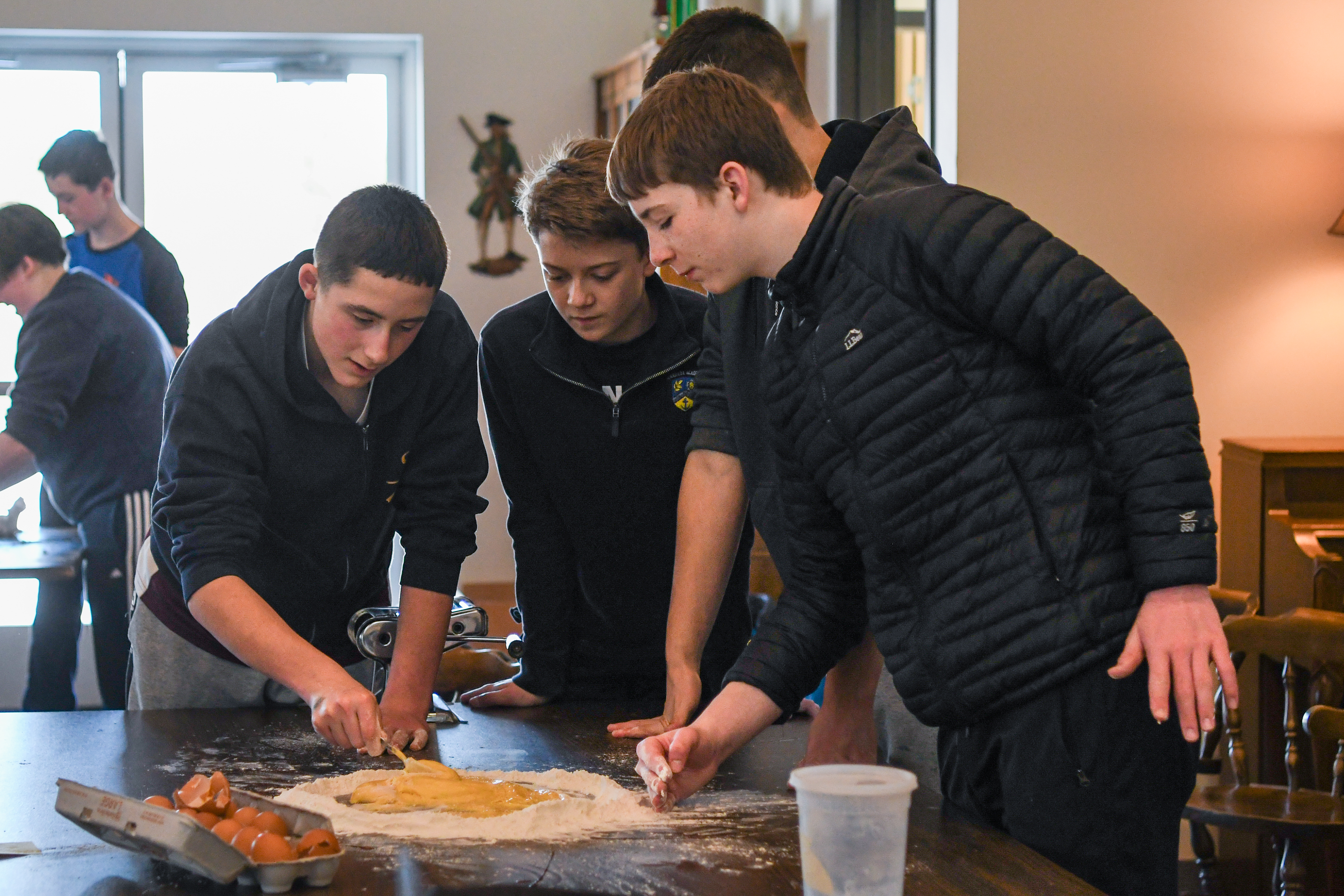 Two boys cooking with teacher
